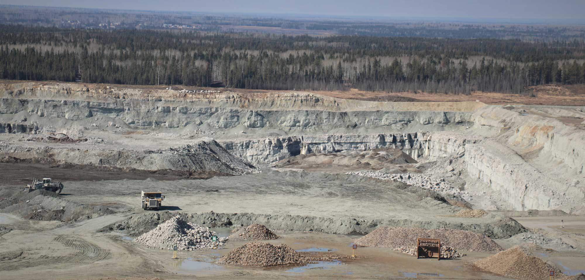 The Hammerstone quarry covers an area of about 3,400 acres approximately 60 km north of Fort McMurray in the heart of the Athabasca oil sands. Hammerstone's assets include over 750 million tonnes of directly accessible limestone aggregate reserves and other local alluvial sand and gravel resources. The limestone quarry area is unique in that the outcrops are at or near surface across the quarry area and is not buried beneath the overlying oil sands as it is elsewhere in the region.